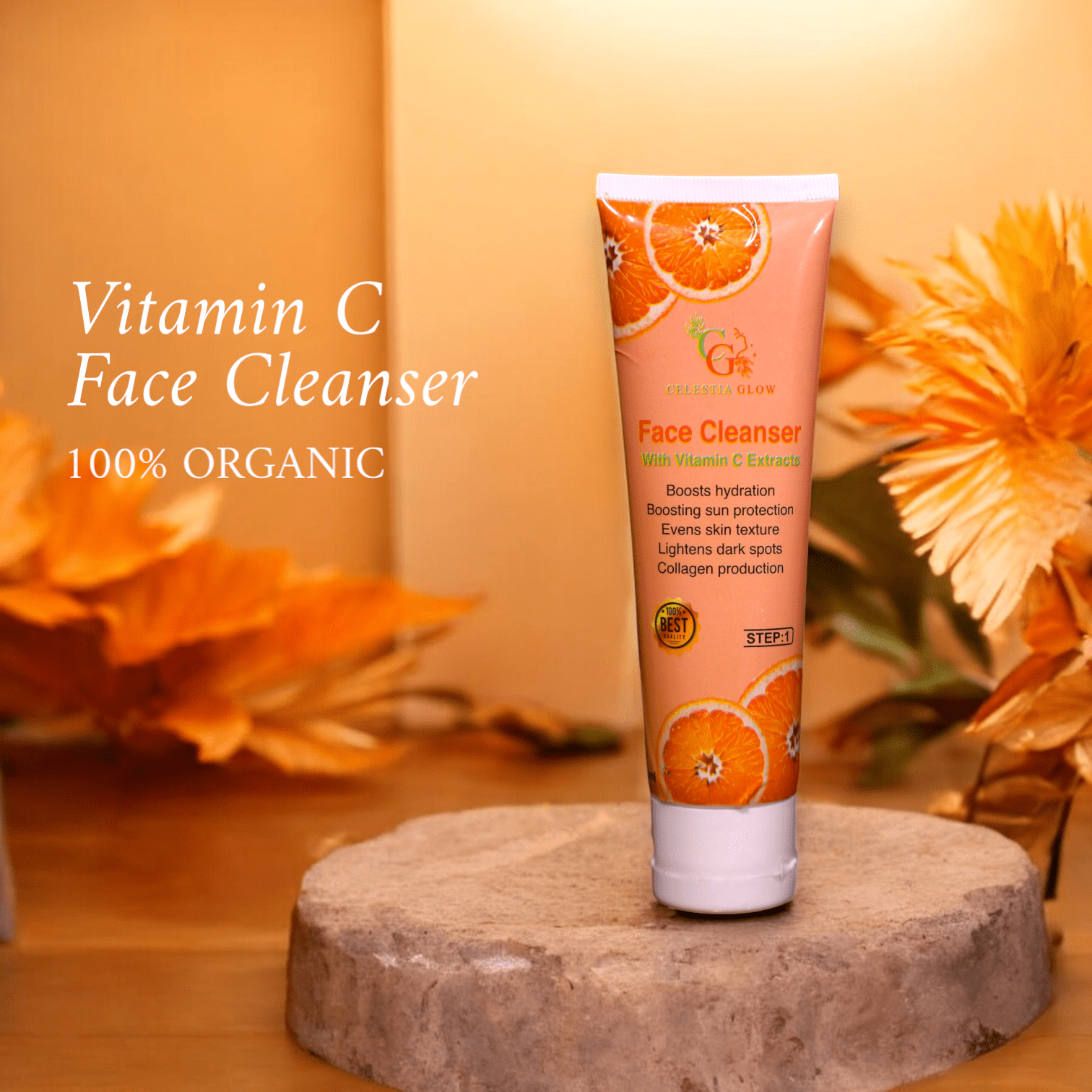 Revitalize your skin with Celestia Glow Vitamin C Face Cleanser, designed to brighten and refresh. It deeply cleanses while providing hydration for a radiant, healthy-looking complexion.