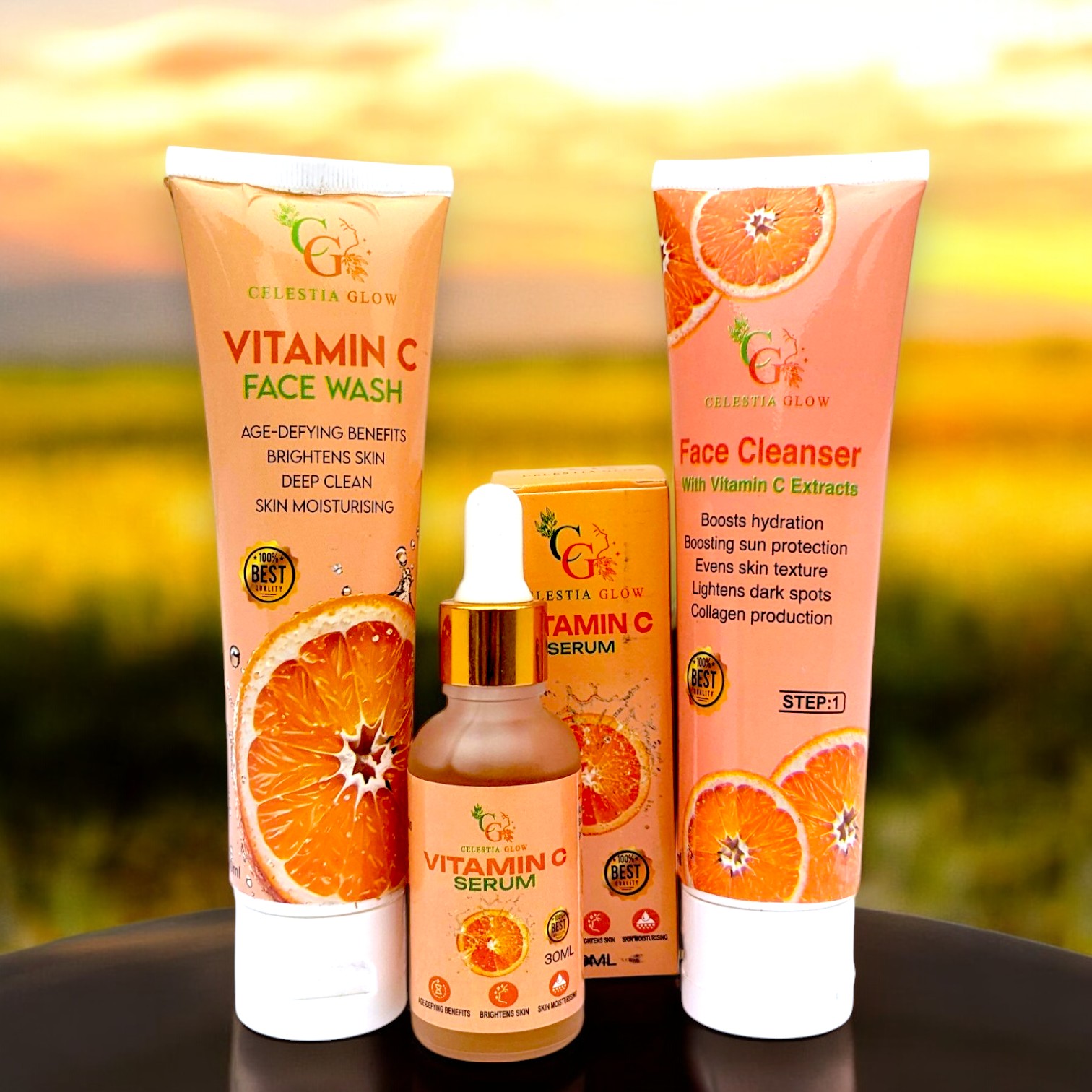 Give your skin the overnight treatment it deserves with the Vitamin C Night Care Kit — a 3-step skincare routine designed to cleanse, treat, and nourish while you rest. Infused with potent antioxidants and skin-repairing ingredients, this kit helps fade dark spots, even out skin tone, and restore your natural glow by morning.